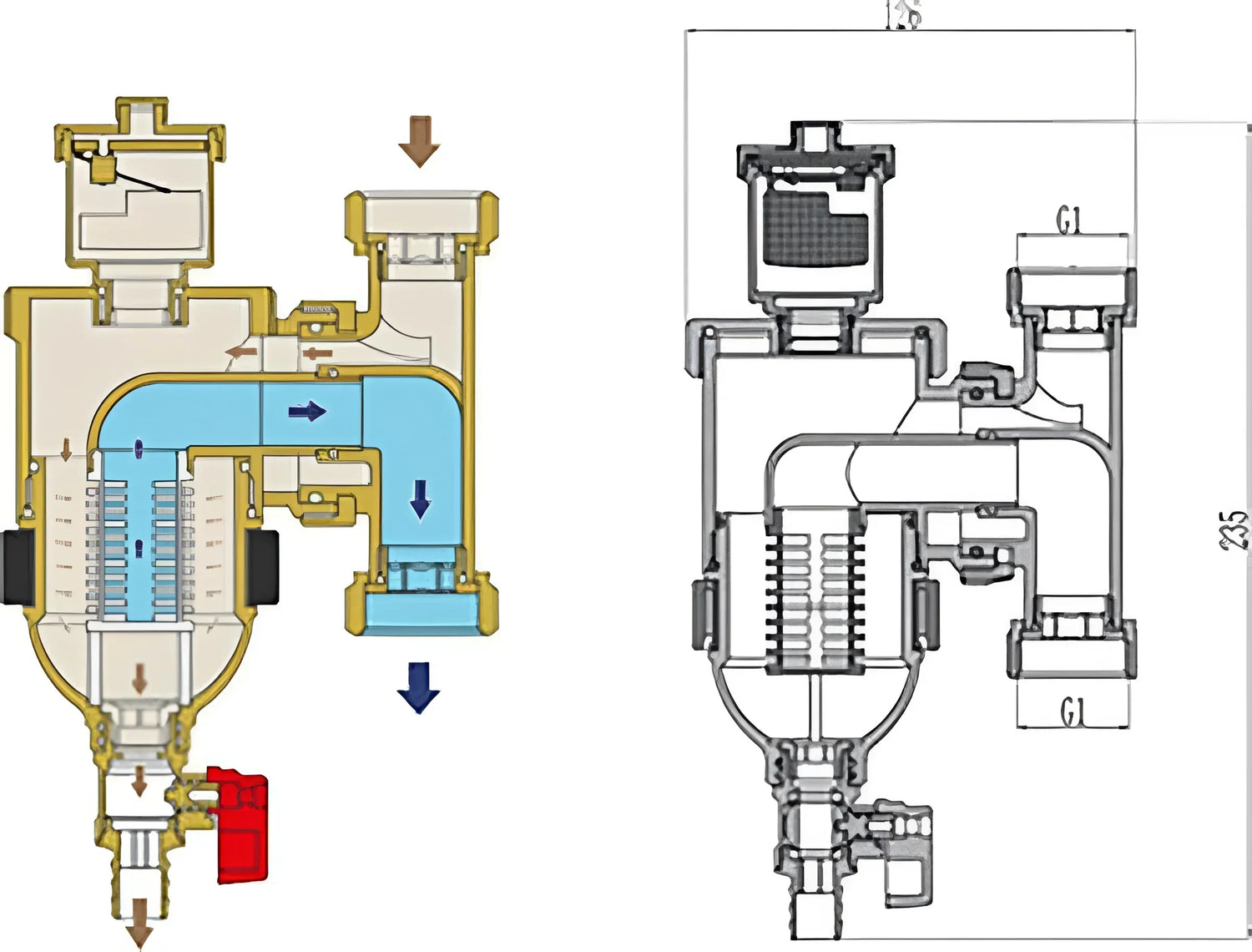 Wita Trap Magnetic Filter, изработен от месинг с червен клапан за отоплителни системи