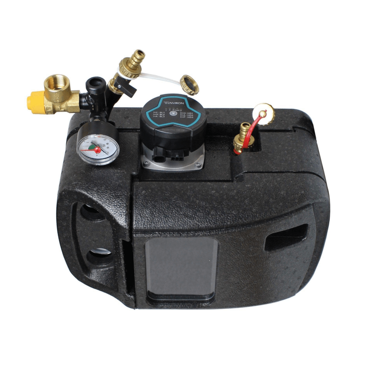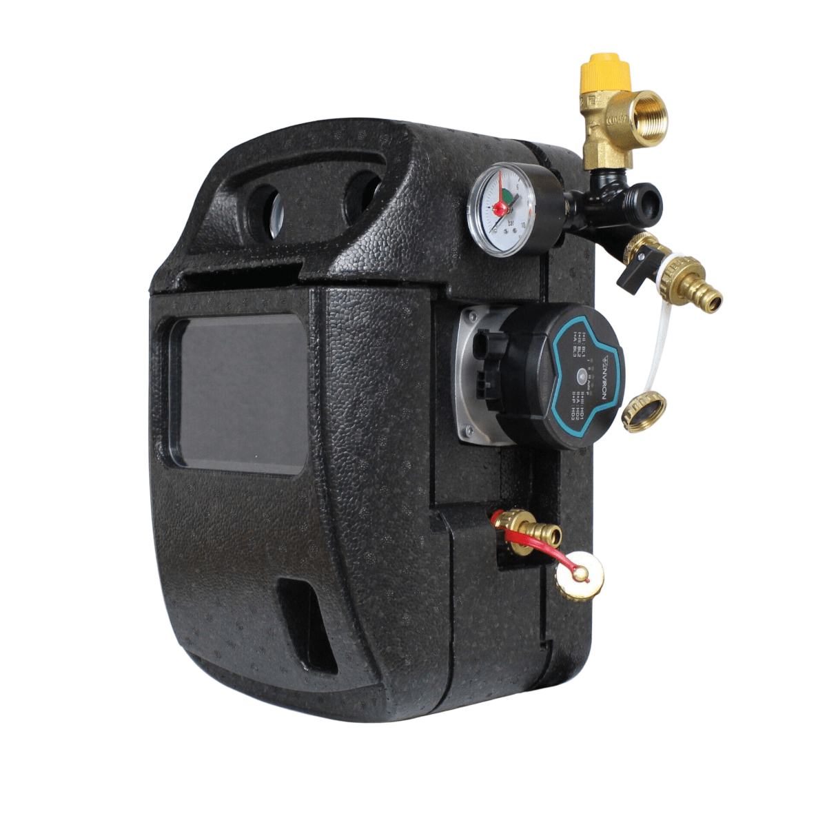 Konstrukce také umožňuje flexibilní připojení expanzní nádrže, zatímco integrovaný solární pojistný ventil a tlakoměr zajišťují bezpečný a nepřetržitý provoz. Boční otvor také podporuje efektivní chlazení čerpadla, což je obzvláště výhodné při nepřetržitém provozu.