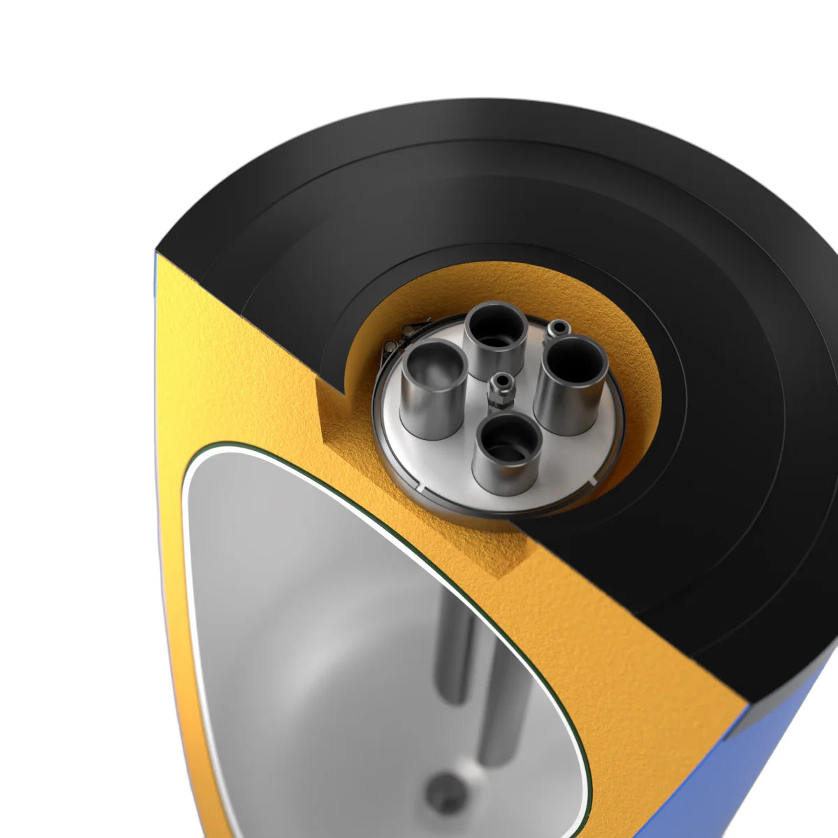 Med sin volumen på 200 liter og en vægt på kun 33 kg tilbyder Sunex FISH Carbon S4 et uovertruffent forhold mellem kapacitet og håndtering. Den centraliserede placering af alle tilslutninger på toppen muliggør fleksibel tilslutning til en bred vifte af varmesystemer uden at spilde plads.