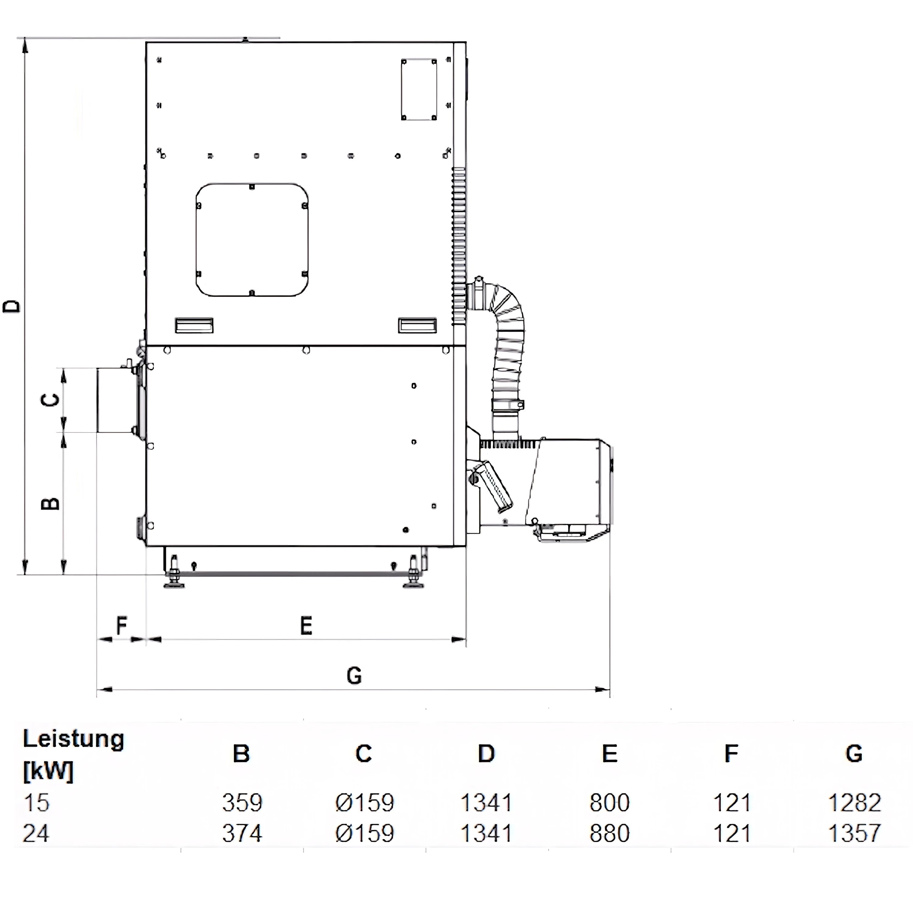 Ο συμπαγής σχεδιασμός και το δοχείο pellet που βρίσκεται πάνω του επιτρέπουν την εγκατάστασή του σε πολύ στενούς χώρους. Η εγκατάσταση σε κλειστά συστήματα είναι δυνατή με την τήρηση των απαιτήσεων ασφαλείας από την τεχνική τεκμηρίωση. Ο σωληνωτός εναλλάκτης θερμότητας έχει σχεδιαστεί για γρήγορο και εύκολο καθάρισμα.