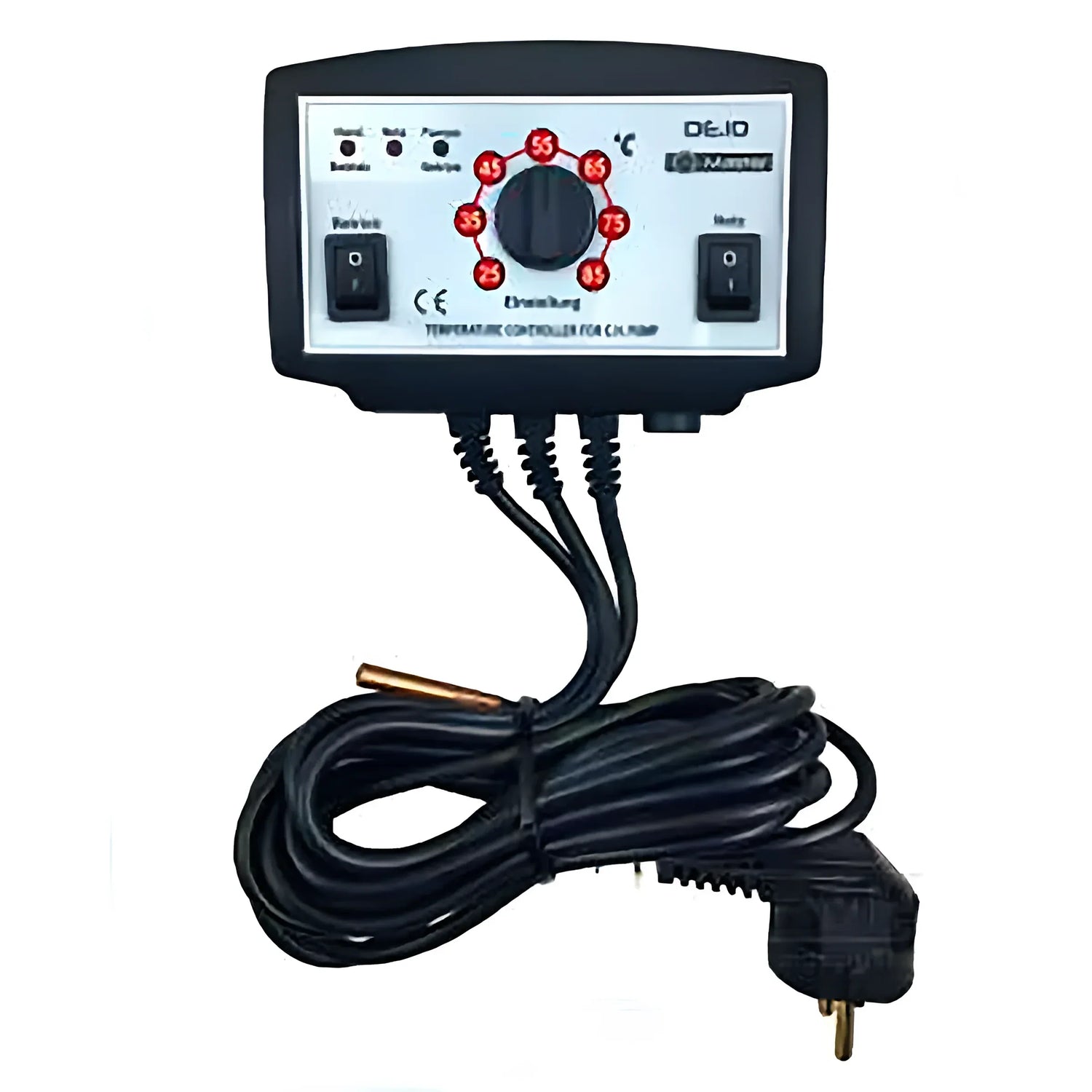 The Master DE.10 pump controller enables precise control of your circulation pump or boiler return flow booster. The temperature is easily adjusted using a convenient rotary dial. The controller switches the pump on as soon as the set temperature is reached and automatically deactivates it if the boiler temperature drops more than 2°C below the target value. This precise functionality ensures that the pump only operates when it is actually needed. This ensures energy-efficient operation and extends the pump's service life.