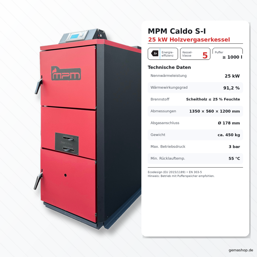 MPM Caldo S-I 25 kW kotao za rasplinjavanje drva A+ (Ekodizajn, klasa 5)