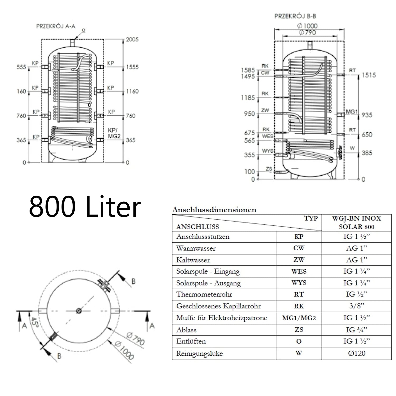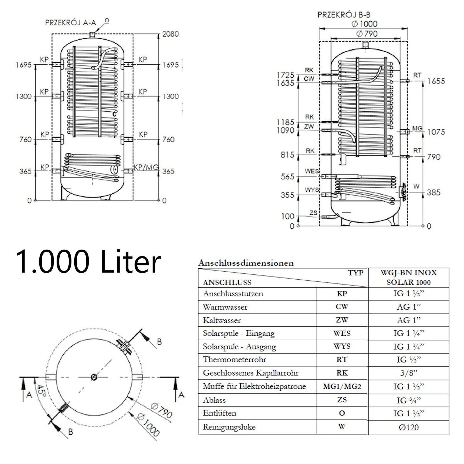 WGJ-BN INOX SOLAR ir kombinēta bufera uzglabāšanas tvertne ūdens un karstā ūdens sildīšanai ar integrētu nerūsējošā tērauda sildīšanas spirāli kā siltummaini. Tā ir paredzēta integrācijai centrālās apkures sistēmās ar katliem, siltumsūkņiem vai saules siltuma izmantošanai, un tā ļauj gan uzkrāt apkures enerģiju, gan nepārtraukti sildīt dzeramo ūdeni.