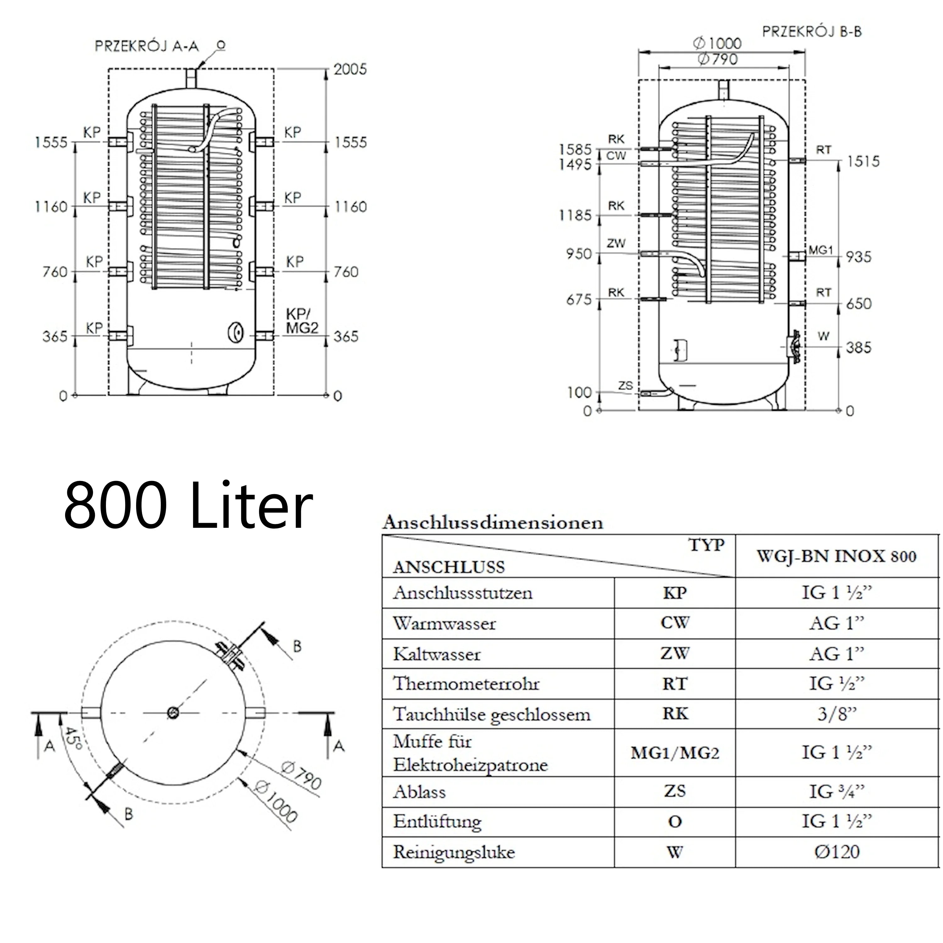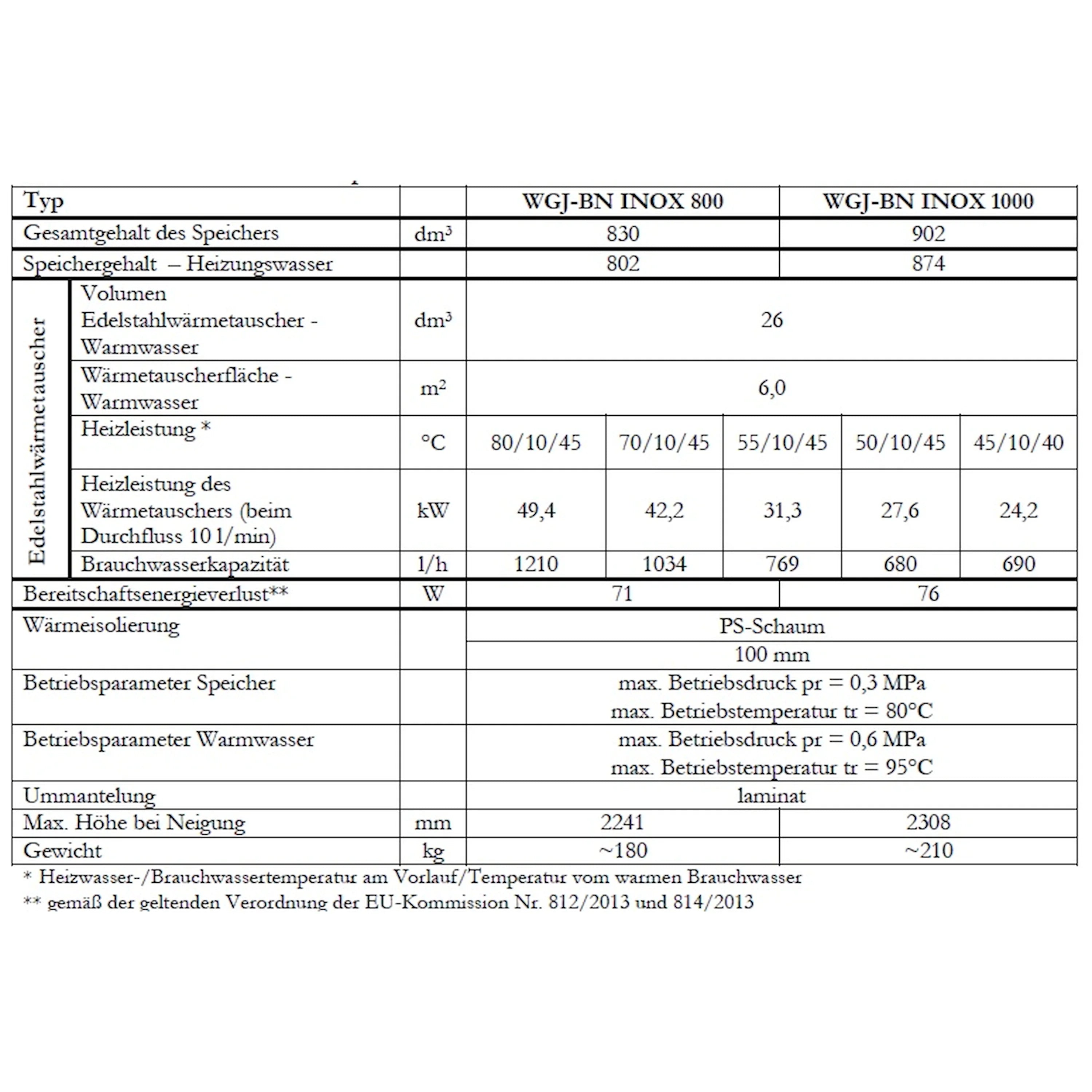 WGJ-BN INOX kombinuje vyrovnávací nádrž pro ohřev vody s integrovaným ohřívačem teplé užitkové vody. Uvnitř slouží vlnitá trubka z nerezové oceli jako výměník tepla, která poskytuje velkou kontaktní plochu pro rychlou a efektivní výměnu tepla a umožňuje okamžitý ohřev vody. Maximální provozní tlak nádrže je 0,3 MPa.